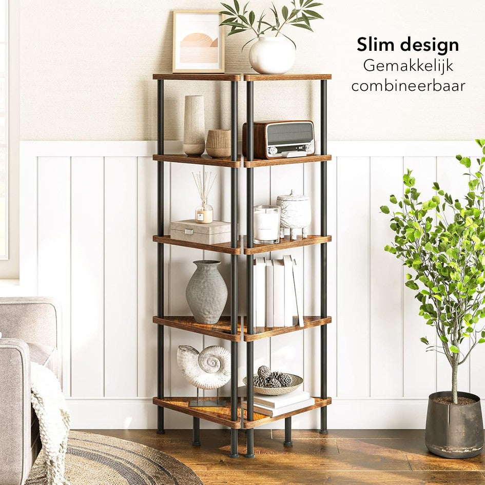 Hoekrek met 5 lagen - Boekenrek - Hout & Metaal – 30x30x115 cm