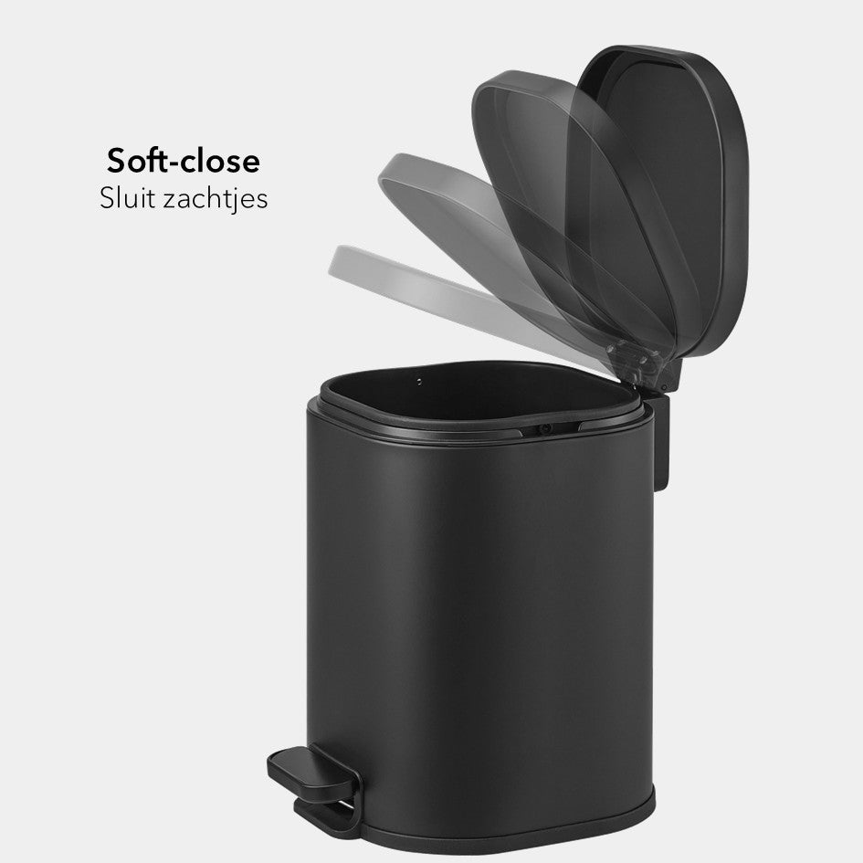 Prullenbak 5 Liter - afgerond rechthoekig - mat zwart